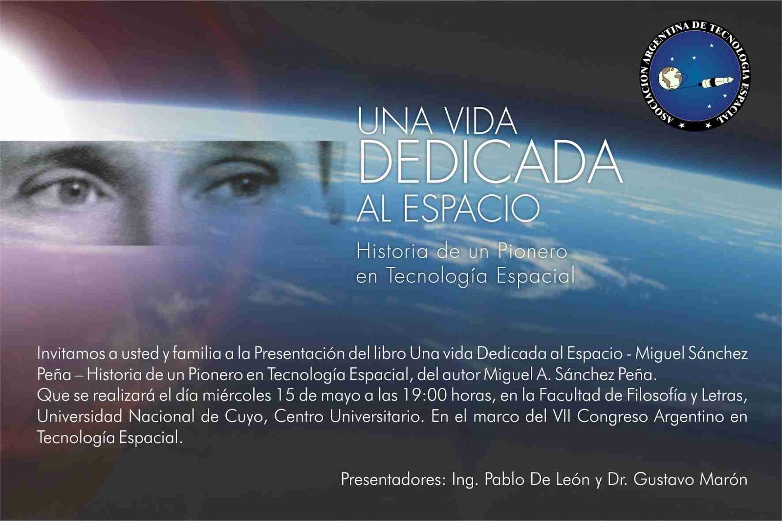 "Una Vida dedicada al Espacio" está auspiciado por: la Asociación Argentina de Tecnología Espacial, el Consejo Profesional de la Ingeniería Aeronáutica y Espacial y la Fundación Casa de la Cultura de Córdoba.